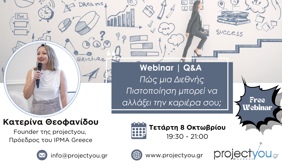 Δωρεάν διαδικτυακό webinar & Q&A με θέμα: «Πώς μια Διεθνής Πιστοποίηση μπορεί να αλλάξει την καριέρα σου;», που θα πραγματοποιηθεί την Τετάρτη 8 Οκτωβρίου στις 19:30.